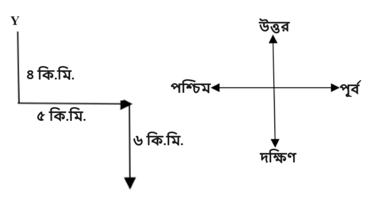 প্রশ্ন: Y দক্ষিণ দিকে মুখ করে ৪ কি. মি. হাঁটার পর বামদিকে ঘুরল এবং ৫ কি. মি. হাঁটল। আবার ডানদিকে ঘুরে ৬ কি. মি. হাঁটল। শেষের দিকে Y কোন দিকে মুখ করে হাঁটছিল?