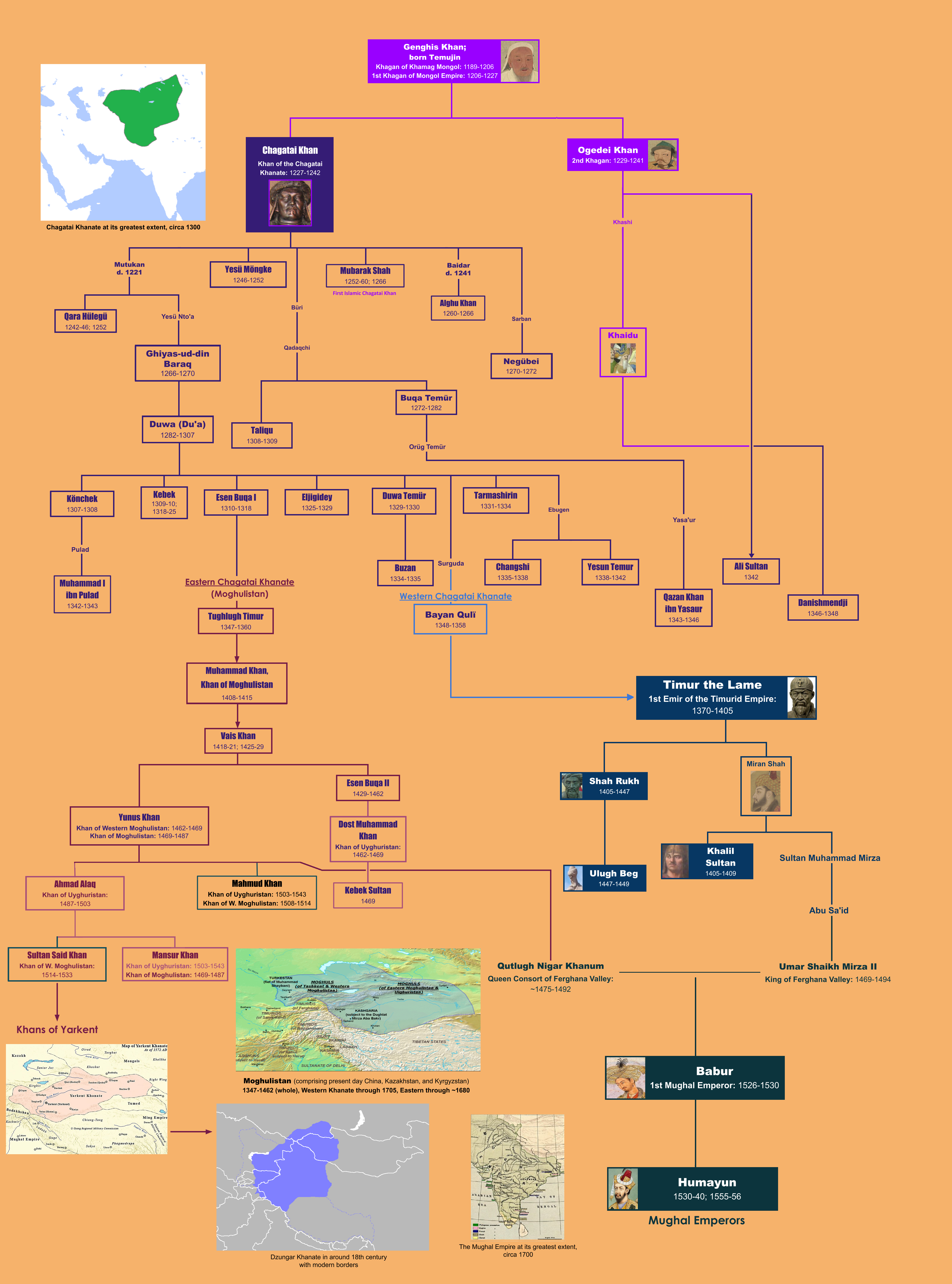 মাতৃকূলের দিক থেকে চেঙ্গিজ খানের বংশের সঙ্গে সম্পর্কিত ছিলেন।