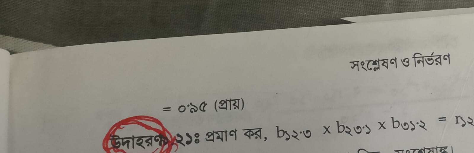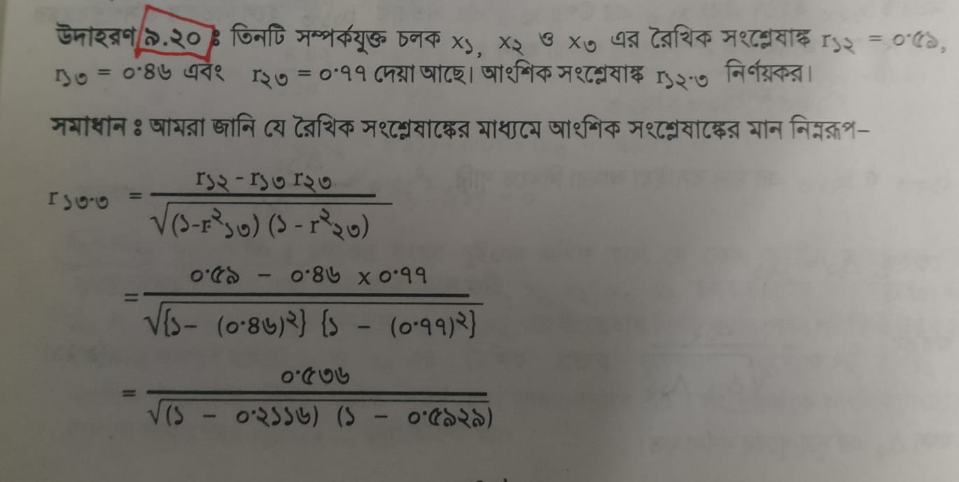 তিনটি সম্পর্কযুক্ত চলক X১, X২, X৩ এর রৈখিক সংশ্লেষাংক r১২=০.৫৯, r১৩=০.৪৬, r২৩=০.৭৭ হলে আংশিক সংশ্লেষাংক r১২.৩ এর মান কত?
